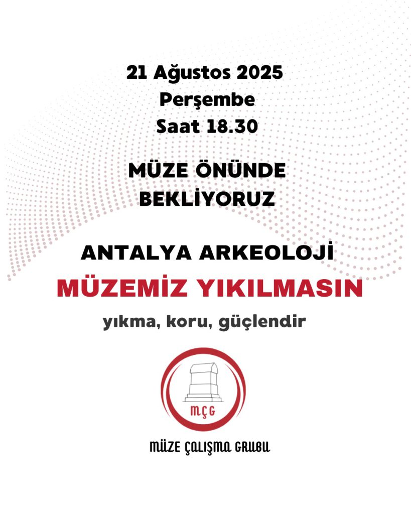 |Müze Çalışma Grubu Sözcüsü Prof. Dr. Gül Işın, Antalya Arkeoloji Müzesi yalnızca bir bina değildir. Bu kent için bir bellek, bu ülke için bir değerdir. Onu korumak, geleceğimizi korumaktır” dedi.