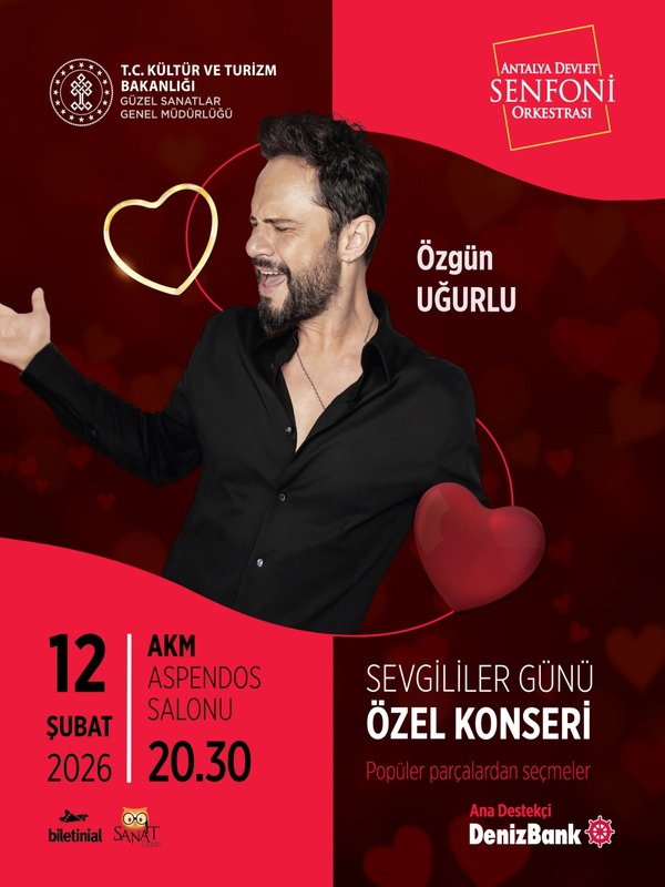 Antalya Devlet Senfoni Orkestrası Denizbank Konserleri kapsamında 12 Şubat saat 20.30’da AKM Aspendos Salonunda Sevgililer Günü özel konseri gerçekleştirilecek.