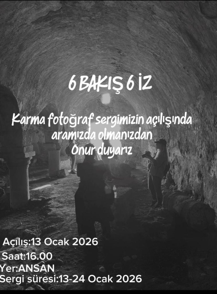 Altı amatör fotoğrafçı; Ayşegül Dursun, Bahar Aşık, Esengül Yaşin, Nilüfer Gülerman, Pınar Merinç, Şebnem  Bozkurt biraraya gelerek kamerada yakaladıklarını 13 Ocak saat 16.00’da ANSAN’da açacakları  “Altı Bakış, Altı İz”  Karma Fotoğraf Sergisi ile sanatseverlerle buluşturacak.